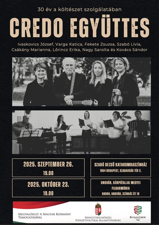 Megalakulásának 30. évfordulója alkalmából két őszi koncertet ad a kárpátaljai Credo Verséneklő Együttes. Az eseményekről Varga Katica, a zenekar tagja számolt be Facebook-oldalán.