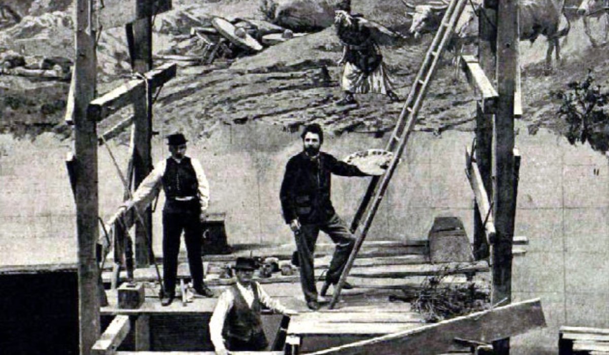1891-ben, párizsi útja során megnézte Jean-Baptiste-Édouard Detaille és Alphonse-Marie-Adolphe de Neuville 1883-ban készült, A francia hadsereg című monumentális körképét, és elhatározta, hogy hasonló méretekben festi meg a bibliai özönvíz történetét. (Az akkoriban nagy divatnak örvendő, igen nagy méretű festményeket rendszerint kisebb részekből, kör alakú vázon állították össze, és a közönség a kör közepén szemlélhette a műveket, amelyek teljesen valószerű hatást keltettek.)