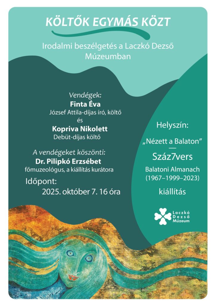 A veszprémi Laczkó Dezső Múzeum látja vendégül október 7-én vidékünk magyar irodalmának két jeles alkotóját. A Költők egymás közt címet viselő beszélgetés résztvevői Finta Éva (Beregszász–Sárospatak) és Kopriva Nikolett (Munkács–Sepsiszentgyörgy) költők lesznek.