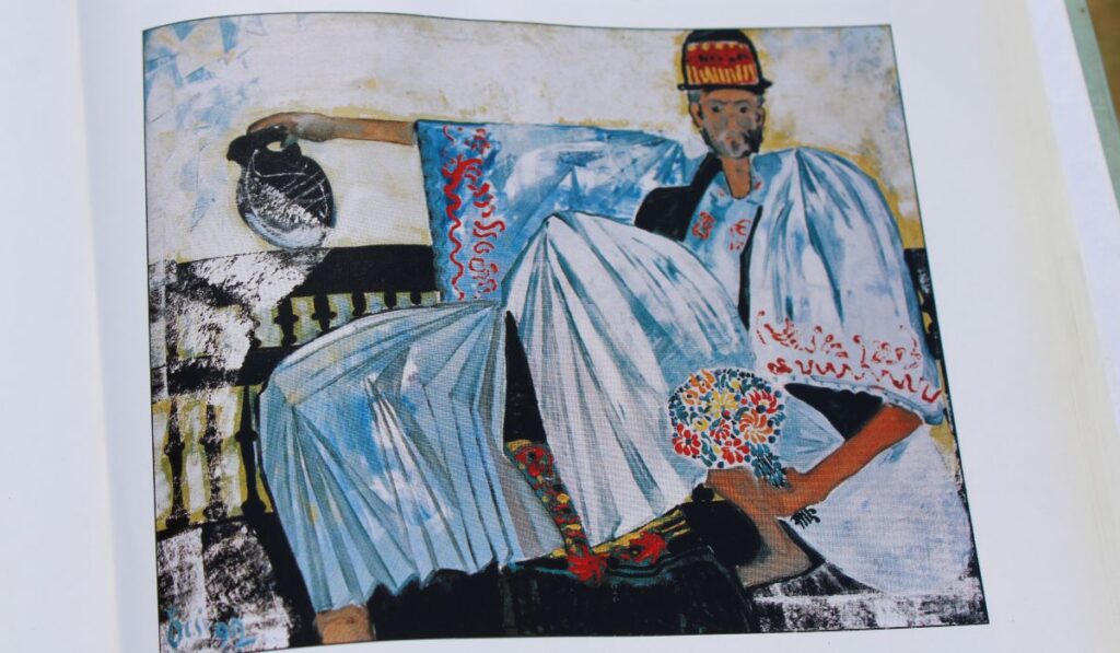A szövegben már itt helyet kapott hat alkotása. Megtudhatjuk például azt, hogy a tradicionális témák mellett absztrakt alkotásokat is készített, viszont a tájképfestészet nem igazán volt az ő világa.