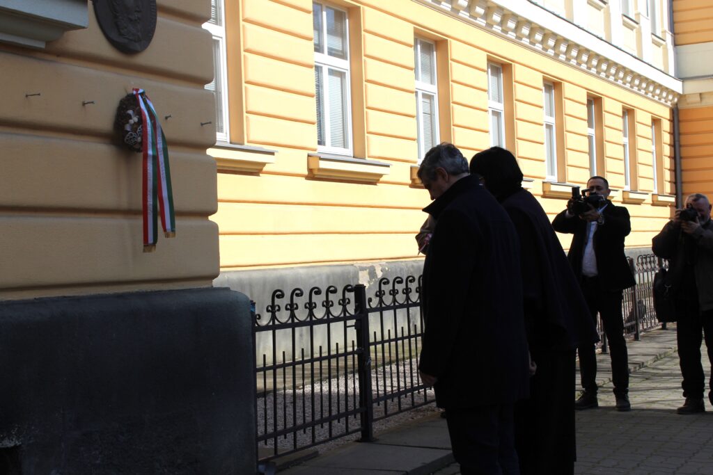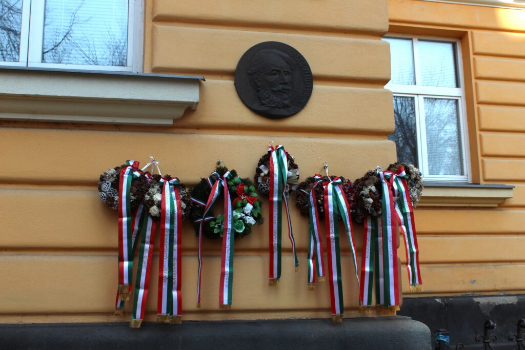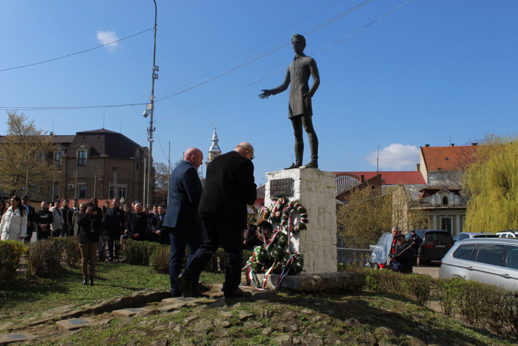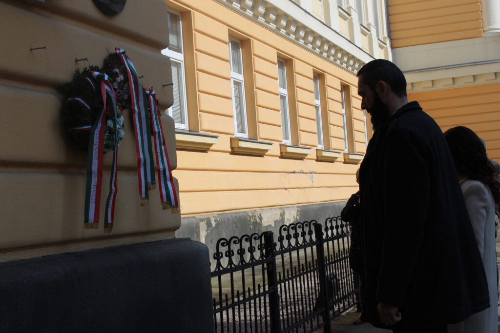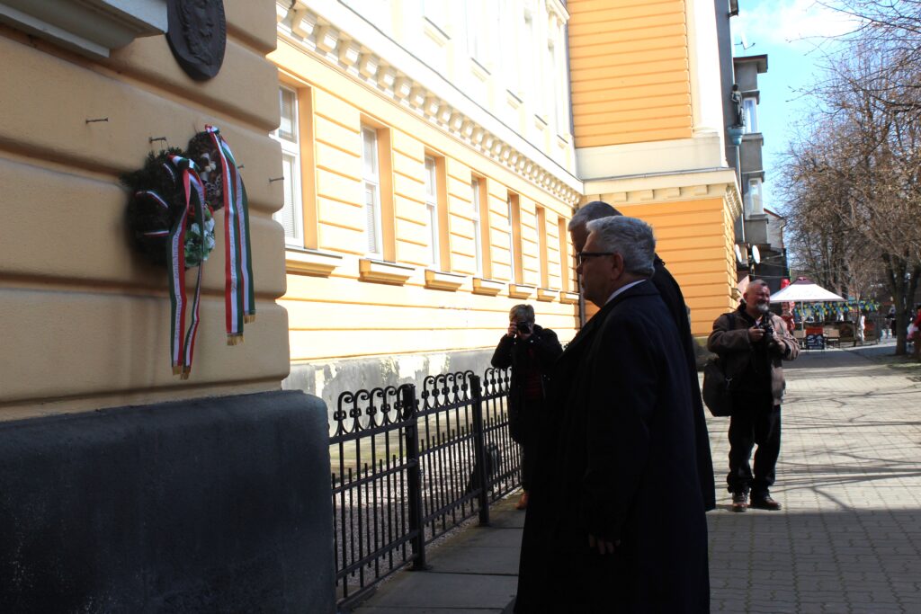 A Szózat elhangzása után a résztvevők megkoszorúzták előbb a főiskola bejáratánál található Kossuth Lajos emléktáblát, majd Petőfi Sándor szobrát a Rákóczi téren.