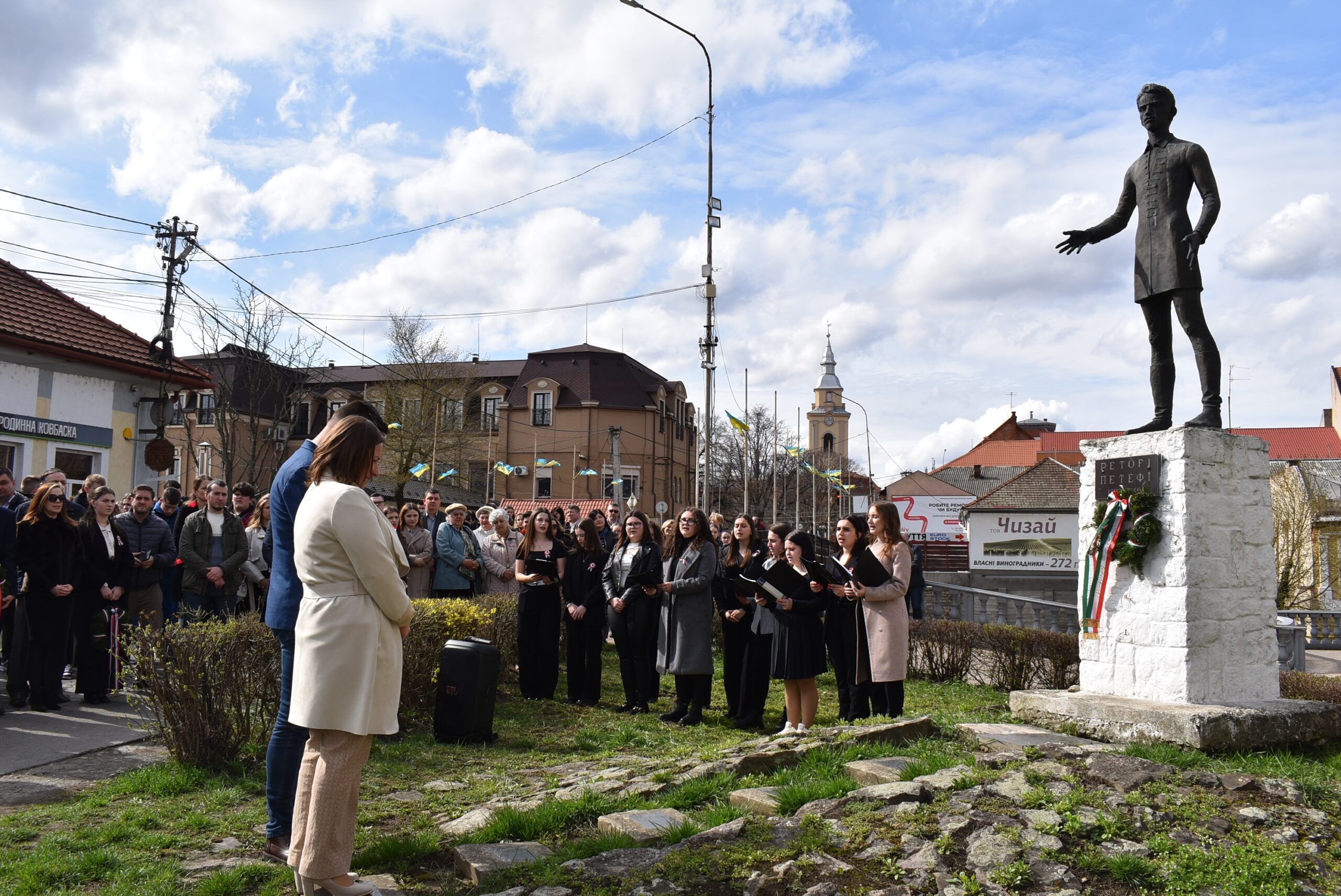 A megemlékezés a Szózat eléneklésével zárult. A továbbiakban a résztvevők megkoszorúzták a főiskola bejáratánál lévő Kossuth-táblát, a beregszászi színház falán lévő Petőfi-emléktáblát, valamint Petőfi Sándor szobrát az Arany Páva épületénél, ahol Ferku Szilveszter tolmácsolásában elhangzott a Nemzeti dal.
