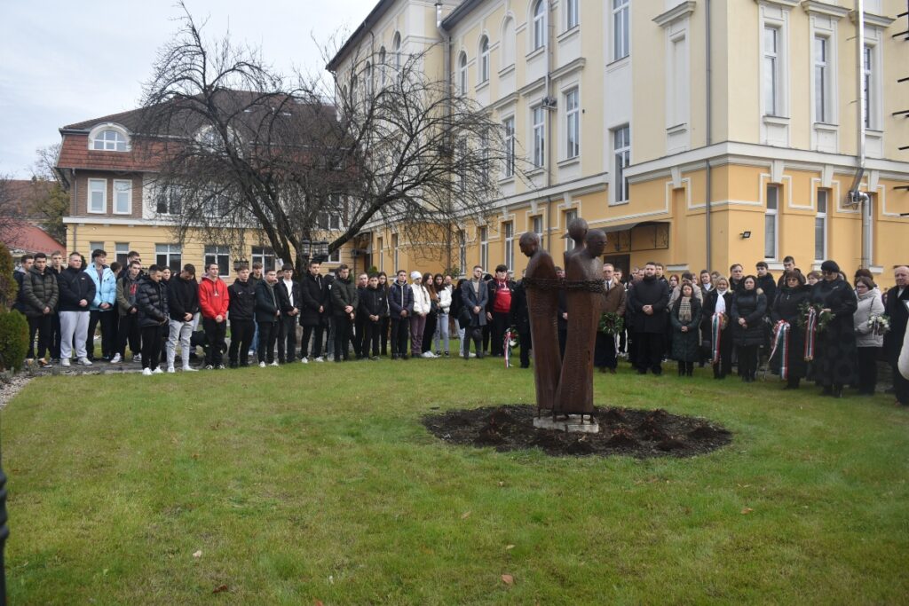Beregszászban az emlékünnepség a II. Rákóczi Ferenc Kárpátaljai Magyar Főiskola udvarán kezdődött, ahol a jelenlévők megkoszorúzták Matl Péter szobrászművész „Gúzsban” című szobrát, majd ökumenikus istentiszteletre gyűltek össze a helyi református templomban.