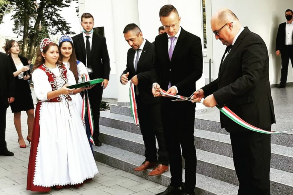 Az épületet Szijjártó Péter külügyminiszter, Brenzovics László elnök és Potápi Árpád János, a Miniszterelnökség nemzetpolitikáért felelős államtitkára avatta fel.