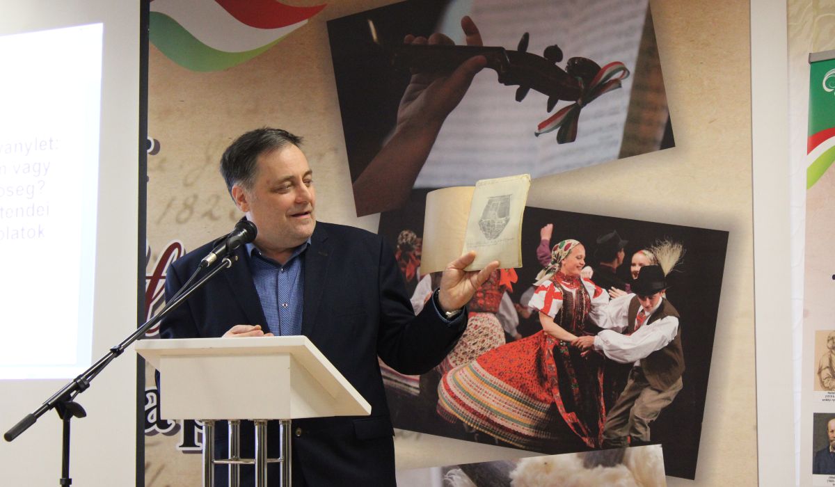Ezt követően előadást tartott dr. Pomozi Péter nyelvtörténész, író, a Magyarságkutató Intézet Magyar Nyelvtörténeti Kutatóközpontjának igazgatója, az Eötvös Loránd Tudományegyetem Bölcsészettudományi Karának docense. Felszólalásában a szórványlétben rejlő lehetőségek és nehézségek témakörét vizsgálta.