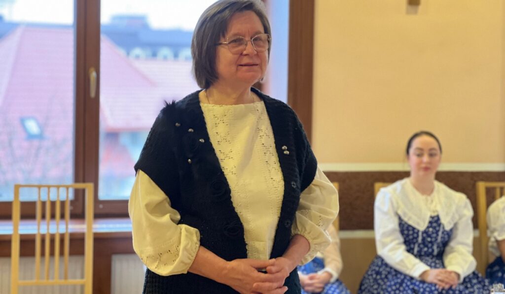 Ködöböcz Gerzsenyi Ilona, a Hagyományok Háza Hálózat-Kárpátalja hálózati szakreferense is elmondta történetét: hogyan végezte el a viseletvarrás- tanfolyamot, miként léptek az életébe az ásványok és az ásványékszerek, azok szakrális vonala, valamint részletesen mesélt mindegyik kiállított ruhadarabról.