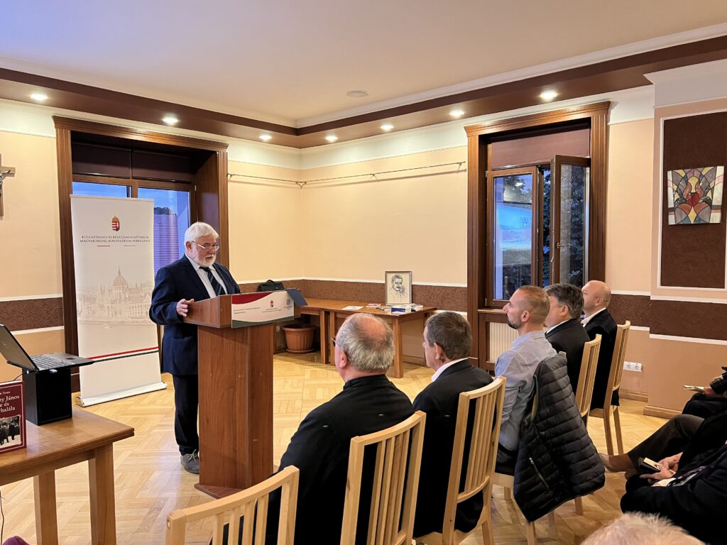 Végül az előadó kiemelte, hogy Esterházy János a béke embere volt, mindenhol és mindenben a békét kereste, és igyekezett azt elősegíteni. Szívszorítónak nevezte, hogy most itt vagyunk a háborúban, és ugyanúgy sóvárgunk a béke után, mint annak idején az emberek. De éppen emiatt Esterházy János egy hiteles példakép számunkra. Tőle tanulhatjuk a szenvedésben való kitartást, a Jézushoz való ragaszkodást minden körülmények között. Imádkozzunk közbenjárásáért, hogy országunkban a békés megoldások érvényesüljenek.