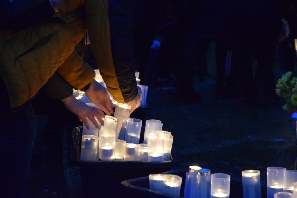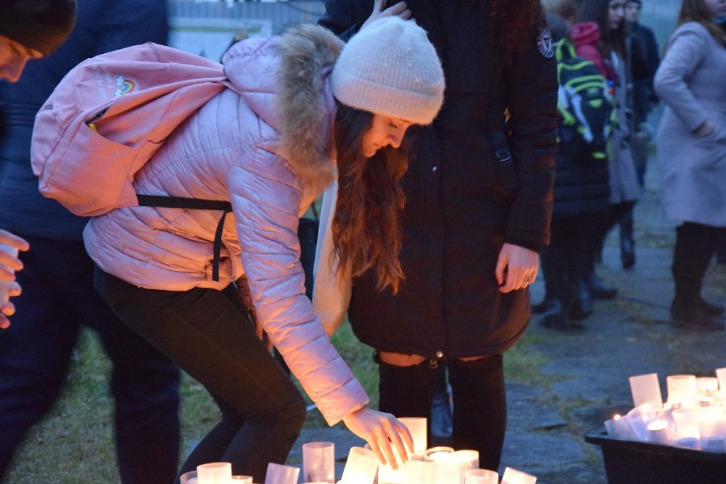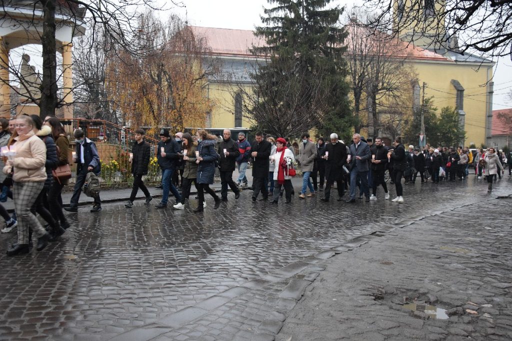 Az istentisztelet után a résztvevők gyertyákkal vonultak végig a városon, s elhelyezték az emlékezés koszorúit a református templom előterében, a Beregszászi 5. Számú Középiskola bejáratánál, valamint a Puskin téri monumentumnál. Több száz gyertya égett az áldozatok neveit hirdető emléktáblák alatt, ahol szinte minden jelenlévő talált felmenőt a névsorban.