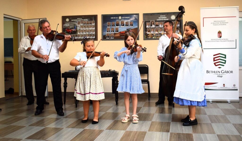 A VII. Ung-vidéki népzenei és néptánctábor résztvevői étkezését, utaztatását és szállását a Magyar Kormány, Miniszterelnökség, Nemzetpolitikai Államtitkárság, Bethlen Gábor Alapkezelő Zrt. támogatta.