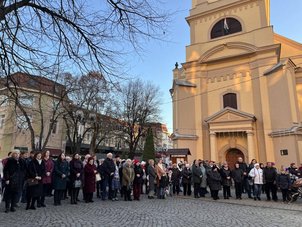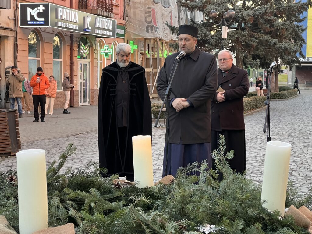 Az adventi koszorú első gyertyáját Molnár János beregszászi esperes-plébános, püspöki helynök és Babják Zoltán polgármester gyújtotta meg. A megható pillanatokban Roszpotnyuk Vitalija hegedűn adta elő az Ó jöjj, ó jöjj, Emmanuel című dalt.