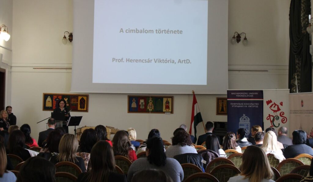 Cimbalommal a világ körül címmel tartott cimbalomtörténeti előadást prof. Herencsár Viktória, ArtD., a Cimbalom Világszövetség elnöke a II. Rákóczi Ferenc Kárpátaljai Magyar Főiskola Esztergom termében.