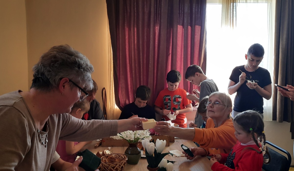 Az otthonuk elhagyására kényszerült emberek nehéz helyzetének enyhítését valamelyest segíthetik az alkotást ösztönző, kreatív programok. A PCS nagydobronyi kézműves délutánján olyan gyerekek és édesanyák vettek részt, akik hetek óta a szakképző kollégiumában laknak. A foglalkozáson szívesen ismerkedtek meg a Nagydobronyra jellemző tojásfestési technikákkal, díszítő mintákkal. Alkotás közben a húsvéti ünnepkörhöz kapcsolódó ukrán és magyar szokásokról is sok szó esett.