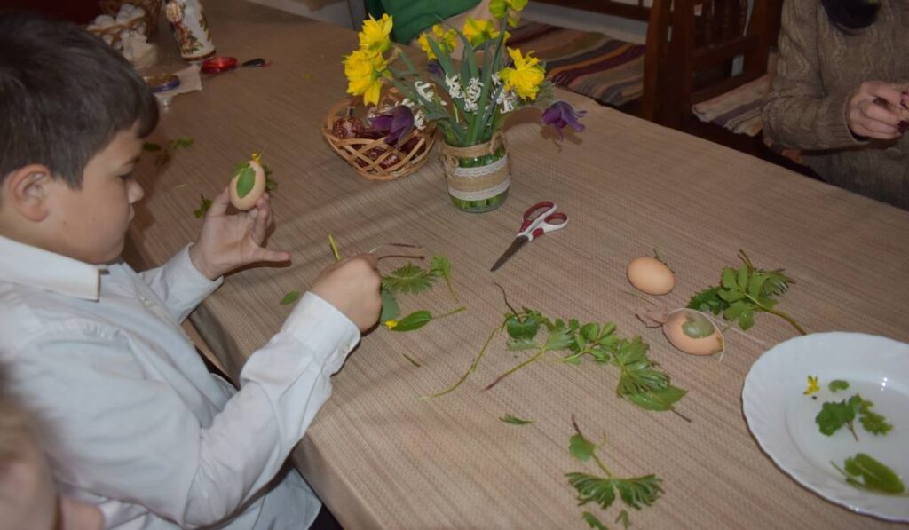 Az ünnepi foglalkozásra beregszászi iskolások érkeztek. A szervezők elsőként a húsvéti hagyományokról, szokásokról beszélgettek a gyerekekkel. Az iskolások is elmondták, hogy otthon hogyan készülnek az ünnepre, valamint a fiúk beszámoltak arról, hogyan járnak locsolkodni, milyen hímeseket gyűjtenek kosaraikba. A beszélgetést egy rövid eligazítás követte, miután az egész osztály a kert felé vette az irányt. Elhangzott ugyanis, hogy a tojásokat növényekkel díszítik, ezért kosarakkal indultak leveleket gyűjteni a fiatalok.