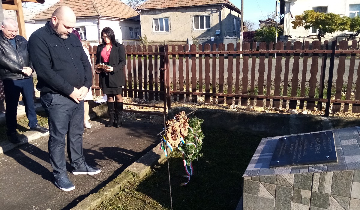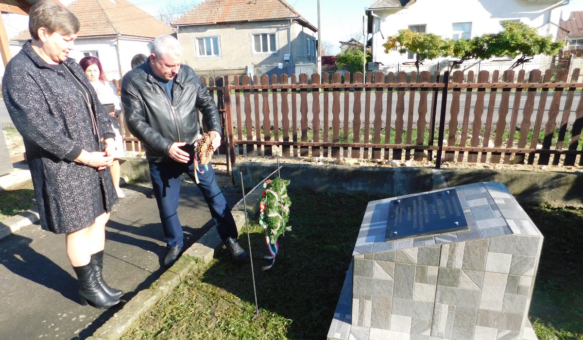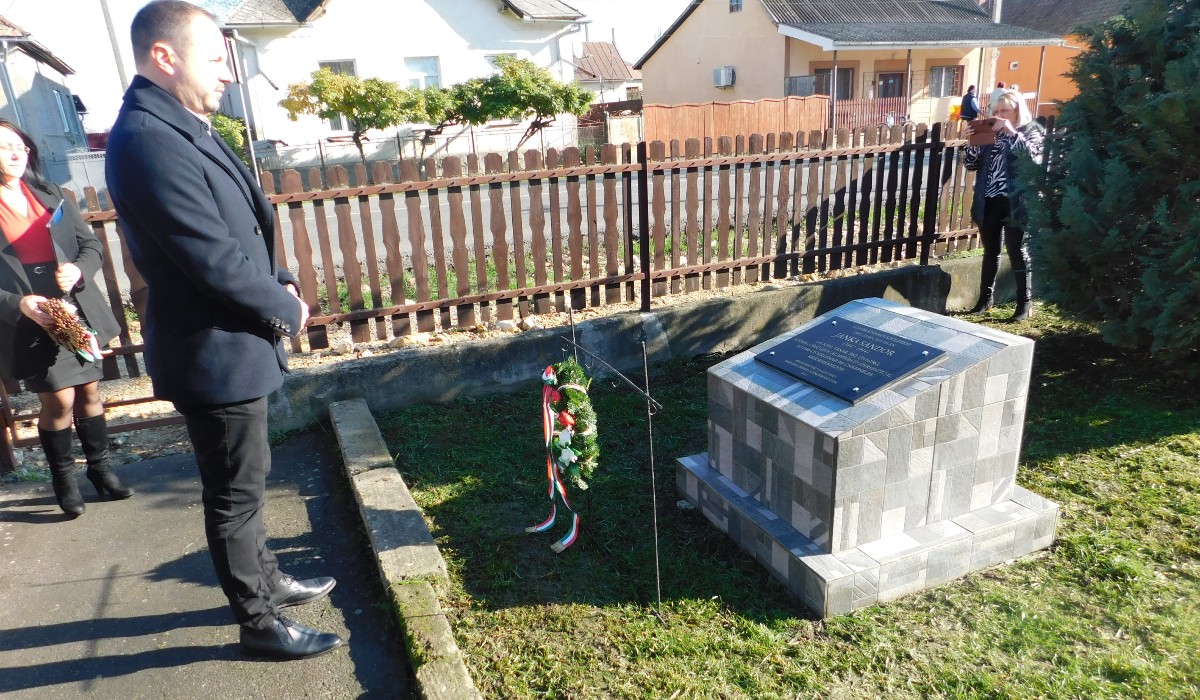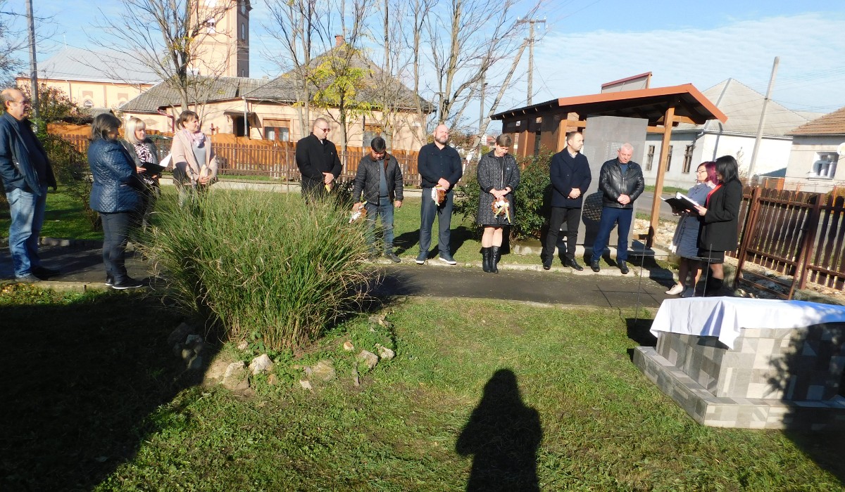 Az emléktáblát Sarkadi Gábor konzul és Jakab Attila lelkipásztor leplezték le, majd a jelenlévők megkoszorúzták az emlékművet.