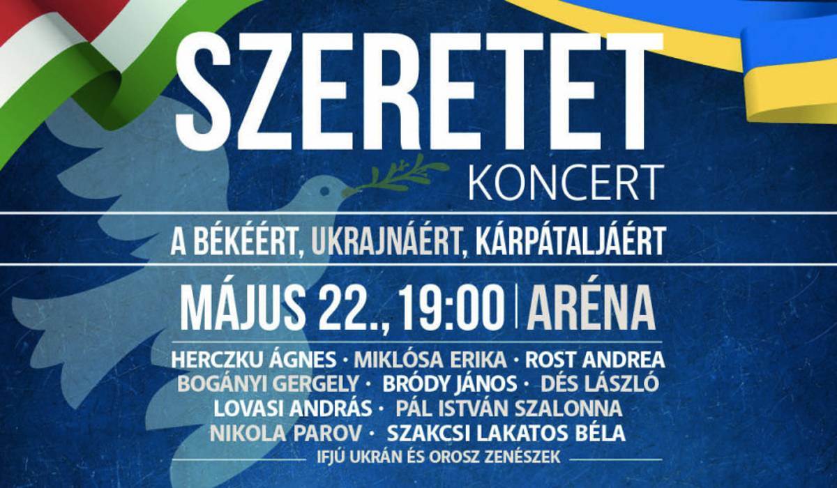 Nyolc segélyszervezet közreműködésével jótékonysági rendezvényt tartanak Szeretet koncert címmel május 22-én a Papp László Budapest Sportarénában. Az est jegybevételét kárpátaljai gyermekotthonok fejlesztésére fordítják.