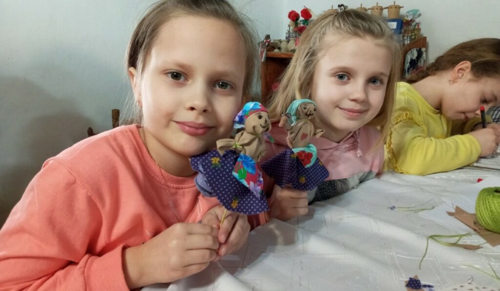 A tájházba érve a gyerekek elsőként a farsangi szokásokkal, egykori tevékenységekkel ismerkedhettek meg rövid előadás keretében. Majd kezdetét vette az alkotómunka. A csoport egyik fele apró kiszebabákat készített, a másik fele pedig a tárcán szövést próbálta ki, melynek eredményeként szintén kicsi, szőtt babák készültek. Néhány ügyes kezű tanuló a konyhában segédkezett a csörögefánk hajtogatásánál.
