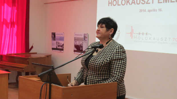 Orosz Ildikó, a II. RF KMF elnök asszonya Radnóti Miklós soraival kezdte megemlékezését: „Nem tudhatom, hogy másnak e tájék mit jelent, nekem szülőhazám itt e lángoktól ölelt kis ország...”. A neves, zsidó származású magyar költő egy halálmenet során halt meg. „A holokauszt nem volt más, mint egy kegyetlen kísérlet arra, hogyan lehet egy kisebbséget teljesen megsemmisíteni” – hangzottak az elnök asszony szavai. „S kisebbségről lévén szó, az idézett pár sor tükrözi a kárpátaljai magyarság és a zsidóság közös lelki világát. Szolgáljon hát ez a nap emlékeztetőül mindannyiunk számára! Mert sajnos néha a kárpátaljai magyarsággal szemben is hasonló megnyilvánulásokat és gondolatokat észlelhetünk a többségi nemzet képviselői felől. Ezért egy oktatási intézménynek, s így a főiskolának is óriási szerepe van abban, hogy felhívja a figyelmet az emberséget fenyegető veszélyekre. Tanulnunk kell a múlt fájdalmas nehéz perceiből, s meg kell próbálnunk az előttünk álló éveket úgy építeni, hogy ilyen borzalmak még egyszer ne ismétlődjenek meg.” Orosz Ildikó beszédének végén a jelenlévők egy perces néma csenddel és főhajtással emlékeztek a holokauszt áldozataira.
