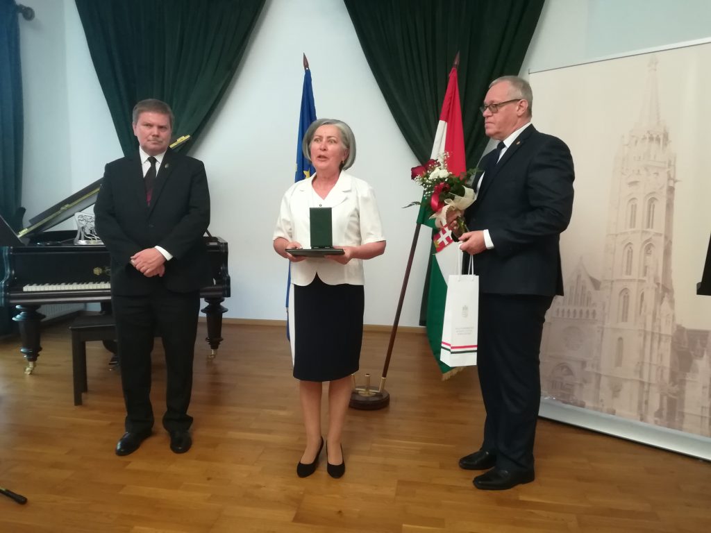 Szintén Magyar Ezüst Érdemkereszttel tüntették ki Mészáros Györgyit, a Técsői Magyar Tannyelvű Líceum tanárát, az Ukrajnai Magyar Nemzeti Tanács alelnökét. A pedagógus büszkén mesélt különböző nemzetiségű felmenőiről, kiemelve magyar édesanyját, aki kialakította benne a magyar nemzeti öntudatot.