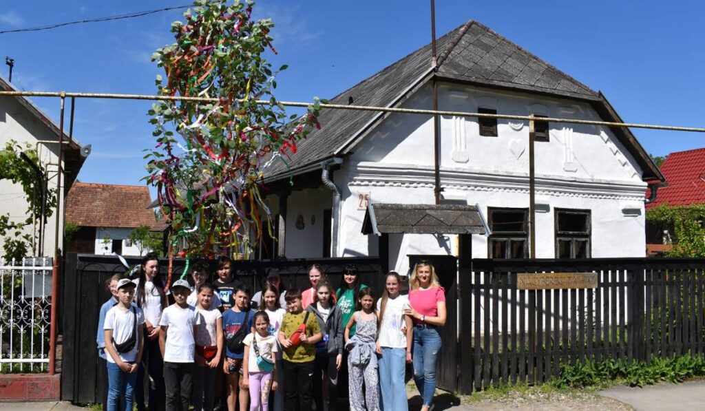 A Pro Cultura Subcarpathica programján ezúttal a Homoki Gimnázium diákjai vettek részt. Nagy utat tettek meg, hogy részesei lehessenek a tájház által szervezett foglalkozásnak. A program elején megismerkedtek az épülettel, megtekintették az időszaki kiállítást, sétáltak egyet a Szikura József Botanikus Kertben. A kerti séta után a májusfadíszítés következett. Az iskolások közösen díszítették fel színes szalagokkal és virágcsokorral. A piros, sárga, barna, rózsaszín, fehér, lila stb. színekben pompázó fa a tájház kapuját ékesíti.