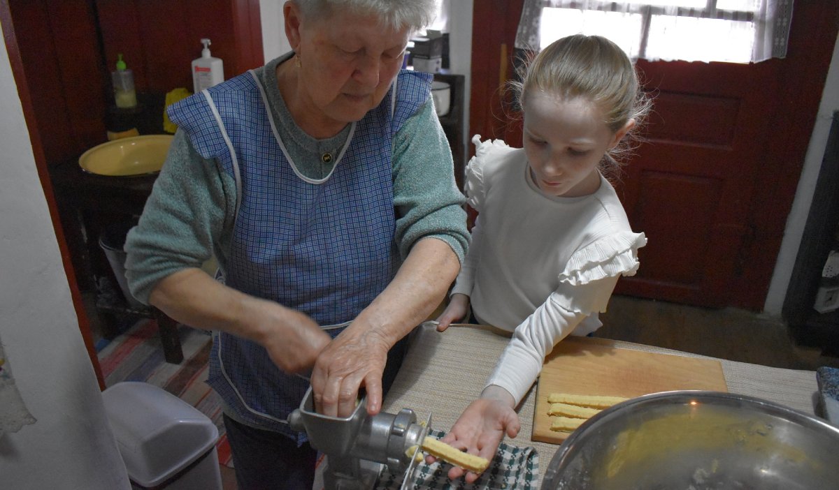 A gyerekek egy része a konyhában tevékenykedett, darált keksz készült. Darálták a tésztát, vágták, formázták és rakták a tepsibe a sütidarabokat. Sokuk nem látott és nem evett még ilyen házi készítésű édességet, ezért a konyhai munka is újdonság volt számukra.