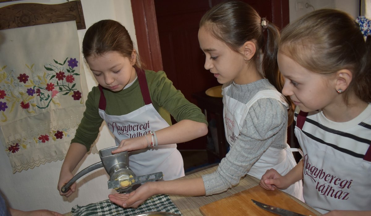 A Nagyberegi Tájház e heti programjának alapját is a csomózás képezte. A foglalkozásra a Benei Gimnáziumból érkeztek. A gyerekek először jártak az intézményben, így elsőként tárlatvezetésen vettek részt, mely során megismerkedtek az épülettel, a belső terekkel, a tárgyakkal és bútorokkal.