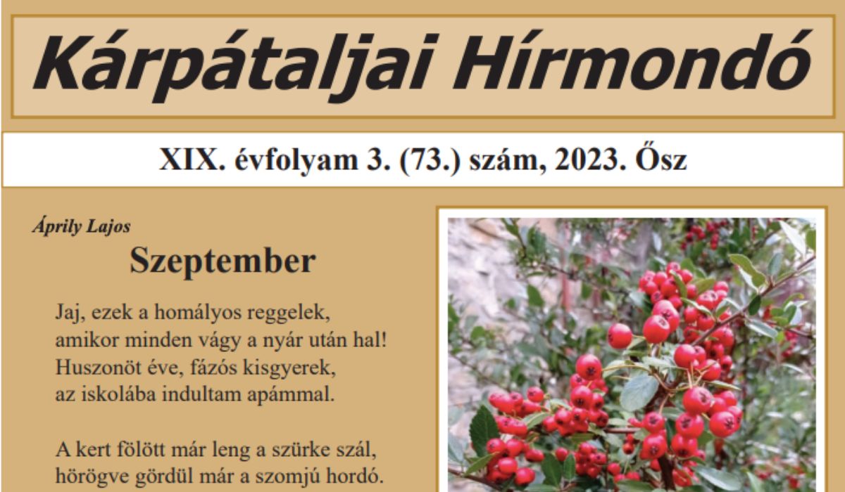 Megjelent a Kárpátaljai Hírmondó XIX. évfolyamának fennállása óta 73., idén pedig harmadik, őszi lapszáma.