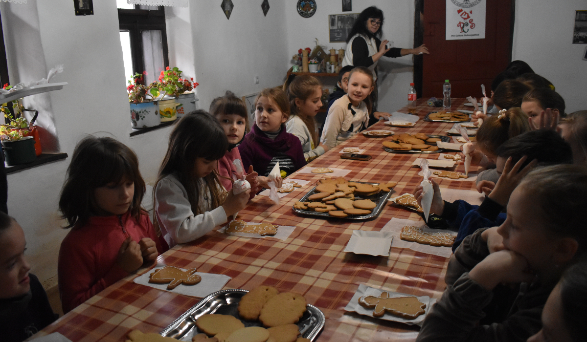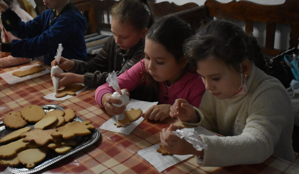 December nyolcadikán beregszászi iskolások látogattak el a Nagyberegi Tájházba, ahol mézeskalács díszítéssel foglalkoztak.
