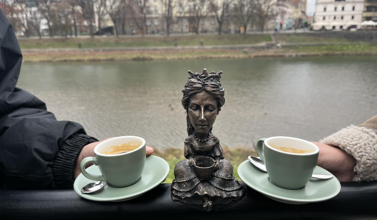 A Kijevi rakparton leleplezett alkotás Sisi királynét ábrázolja, ölében egy kávéval.