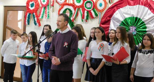Irodalmi műsorral, kokárdakészítéssel, koszorúzással egybekötött megemlékezéssel méltatták március 15-ét Kárpátalja legnagyobb magyarlakta községében.