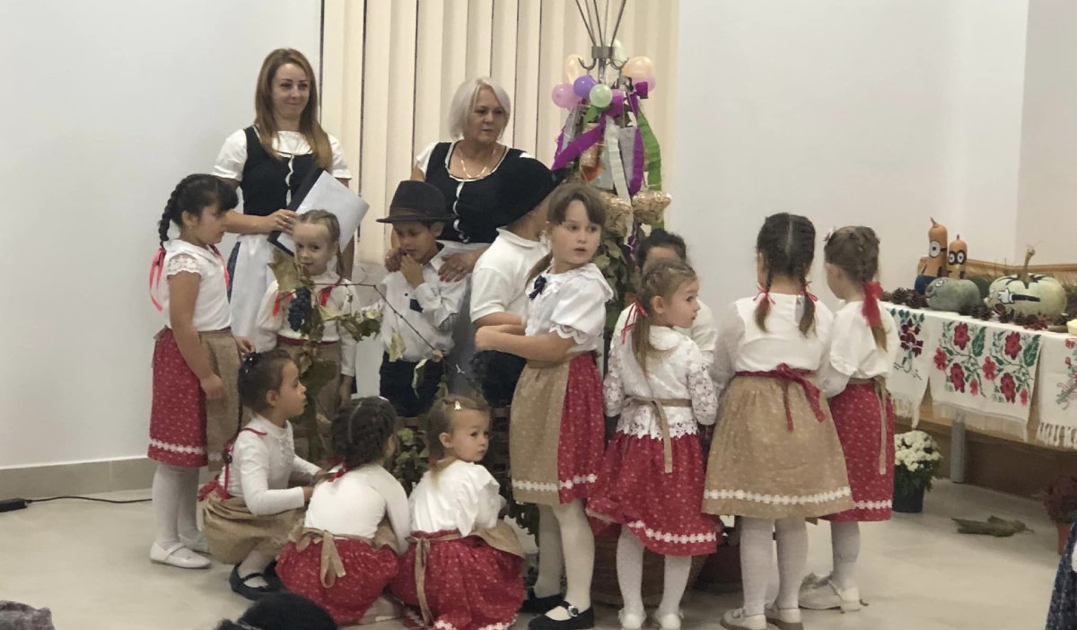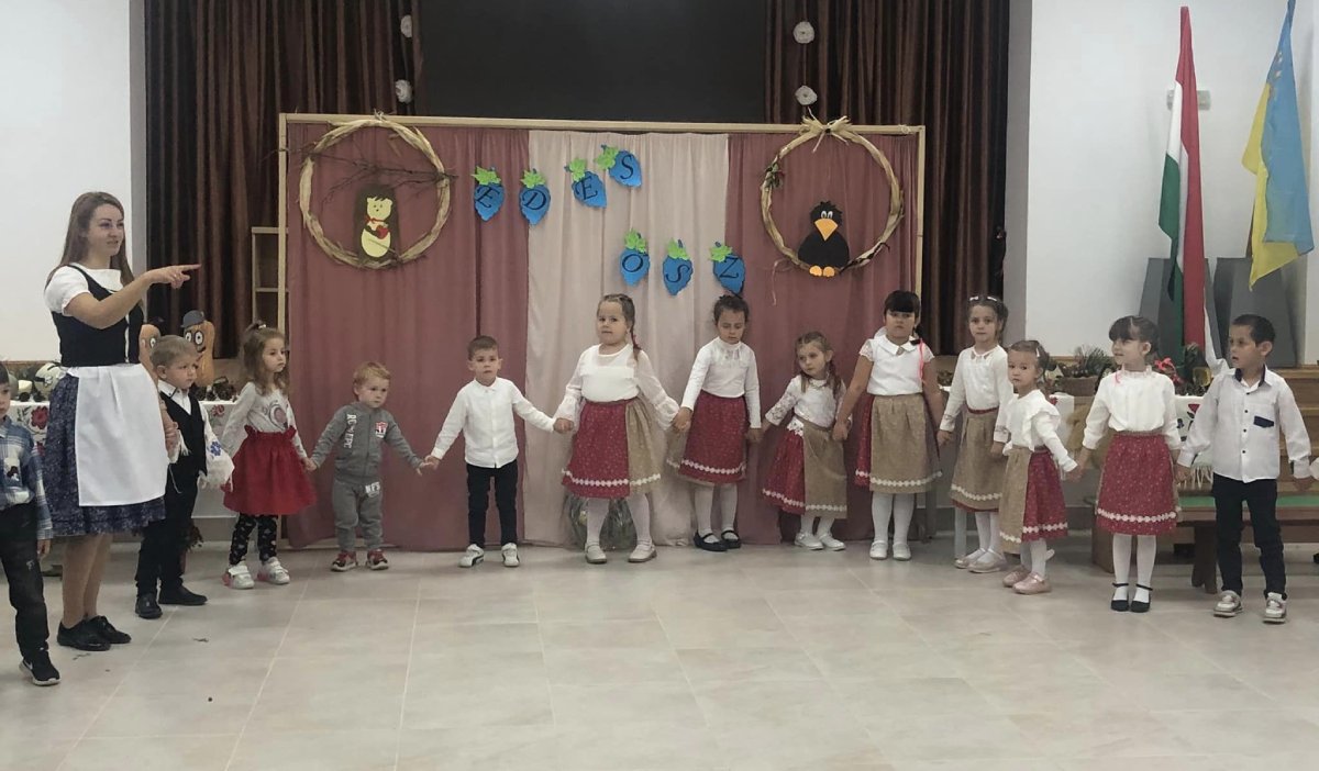 Az ünnepi műsor után szüreti mulatság következett, amely során táncházzal és közös énekléssel szórakoztatták a kicsiket.