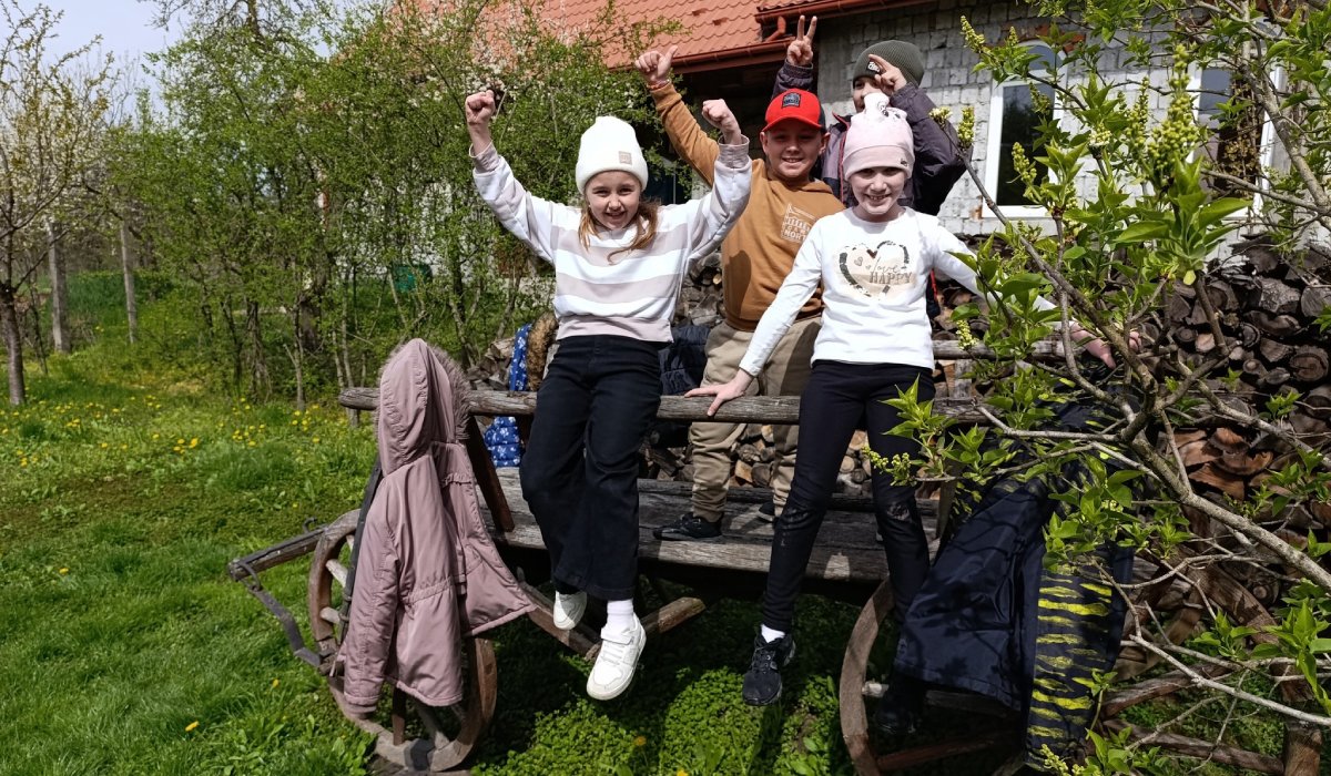 Az jó időnek köszönhetően az udvaron való játék sem maradt el. A csűrből előkerültek a népi játékok, amit a gyerekek előszeretettel használtak.