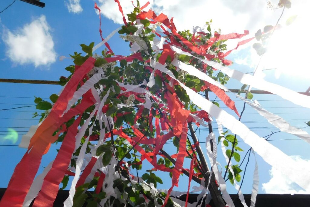 A májusfa a természet újjászületésének szimbóluma. A hagyományok szerint nem csak május elsején, hanem pünkösdkor is állítanak májusfát, melyet színes szalagokkal díszítenek.