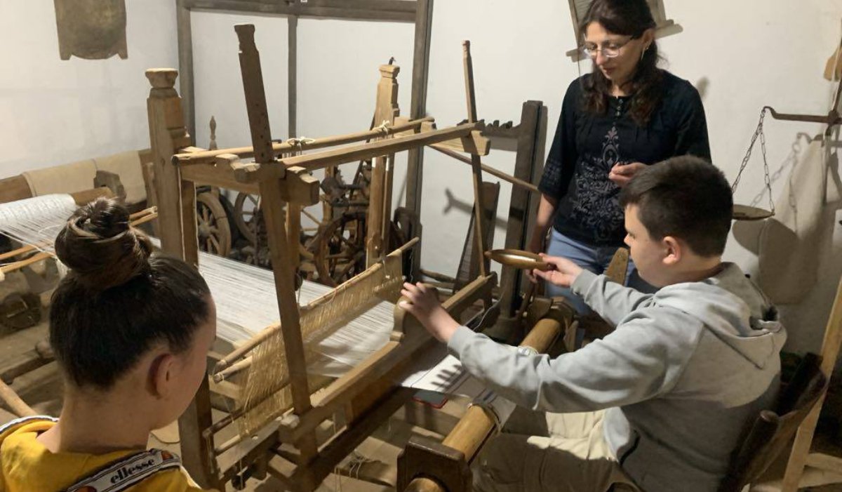 A délután folyamán a Mathias Corvinus Collegium tanulói látogattak el a tájházba. Figyelembe véve a nagyobb korosztályt, ezek a fiatalok a szövést tanulhatták meg, beregi mintákat készítettek. Természetesen a tárlatvezetés sem maradhatott el. A tájház belső tereit is megismerhették ennek során.