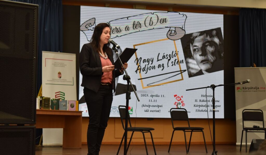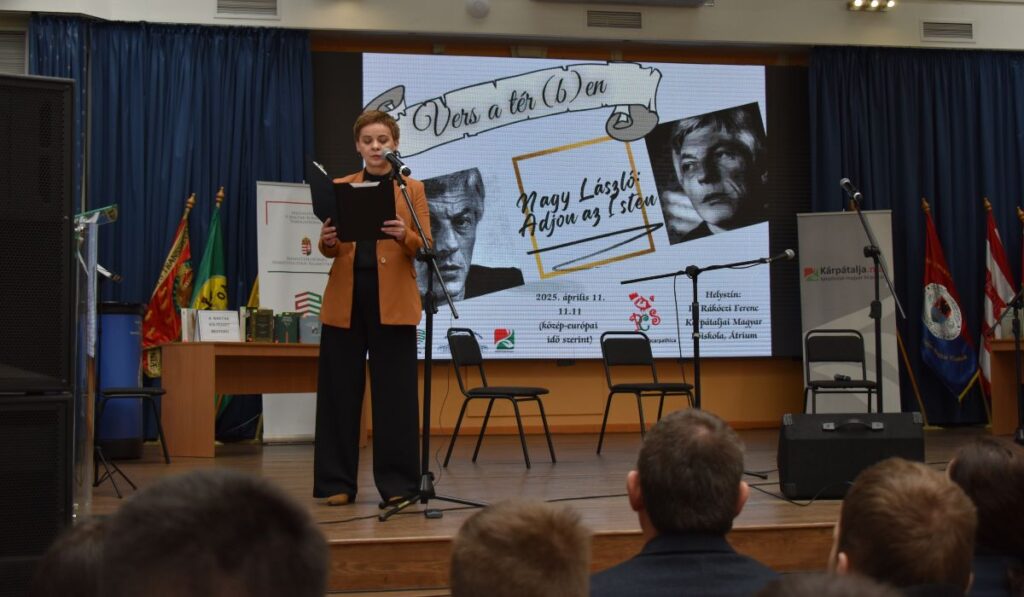 „Amikor az irodalmi évfordulók kapcsán felvetődött Nagy László neve, nem kellett sokat gondolkodnunk a versválasztáson. Az Adjon az Isten című alkotásban mindent felsorol a költő, amire nekünk, kárpátaljai magyaroknak is fokozott szükségünk van. Nagy László gondolatai mentén kívánom, hogy adjon az Isten fényeket, ne kelljen többé sötét házakban, osztálytermekben kuporognunk. Adjon megtartó erőt, építő közösséget, hogy legyen támaszunk a kétségeinkben, és hozza el a rég várt békét, állítsa meg a vérontást, kapjuk vissza a szabadságunkat, hogy példának okáért jövőre már kültéren méltathassuk a költészet napját.”