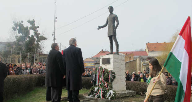 Az istentisztelet után a gyülekezet tagjai átvonultak Petőfi Sándor szobrához egy rövid megemlékezésre, akárcsak Beregszász római, illetve görögkatolikus hívei. Nemzeti ünnepünk alkalmából Mészáros János Elek és Nagy Anikó elénekelték a Kossuth-nótát és a jelenlévőkkel közösen nemzeti himnuszunkat. A megemlékezésen a megjelent szervezetek, egyházak és intézmények képviselői elhelyezték koszorúikat a Petőfi-szobornál. A koszorúzás ideje alatt a katolikus egyház kórusa szolgált.