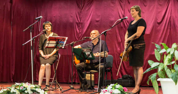 A település első asszonya után Bodnár Orosz Éva elmondta, hogyan került kapcsolatba a költészettel, később milyen kalandos úton ismerkedett meg Ivaskovics József zeneszerzővel, a Credo vezetőjével, aki számos versét megzenésítette. Ezekből több CD is született, sőt egy oratórium is. Miután bemutatott minket, én következtem. Mivel az esten a költészeté volt a főszerep, humoros prózával kezdtem. Leginkább a Szlovákiával kapcsolatos művek arattak sikert. Katzler Hildával már harmadszor lépünk fel, köztük Beregszászban is. A közelmúltban megjelent Prizmán át című kötetéből olvasott fel verseket.