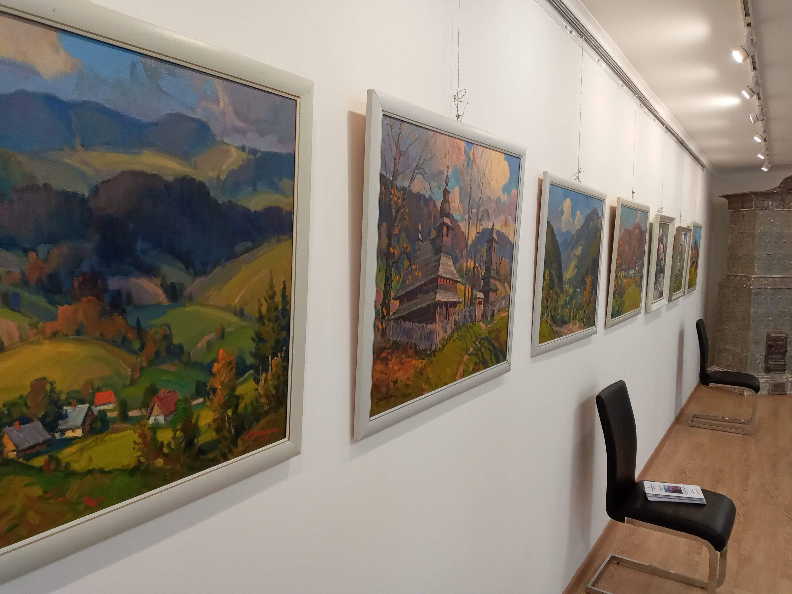 A jelenlegi kiállítás pont ez utóbbi témát ragadja meg. Kárpátalja csodás tájait viszi vászonra a festő. Az évszakok által színesített hegyvidékek, lankák, sebes patakok köszönnek vissza a vászonról. Ragyogó színekkel jeleníti meg a környező táj szépségét. Alkotásaiból árad az optimizmus.