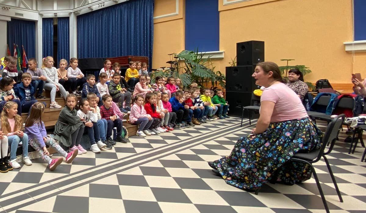 A továbbiakban Kurmai-Ráti Szilvia mesemondó, meseíró előadásában A tengerlépő cipő című kárpátaljai magyar népmesét hallgathatták meg a résztvevők. A beregszászi mesemondó varázslatos mesevilágába közel száz helyi kisiskolás nyert betekintést.