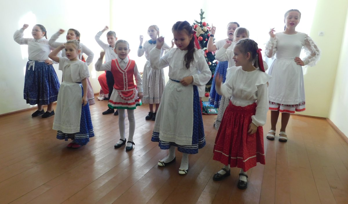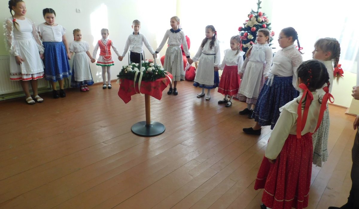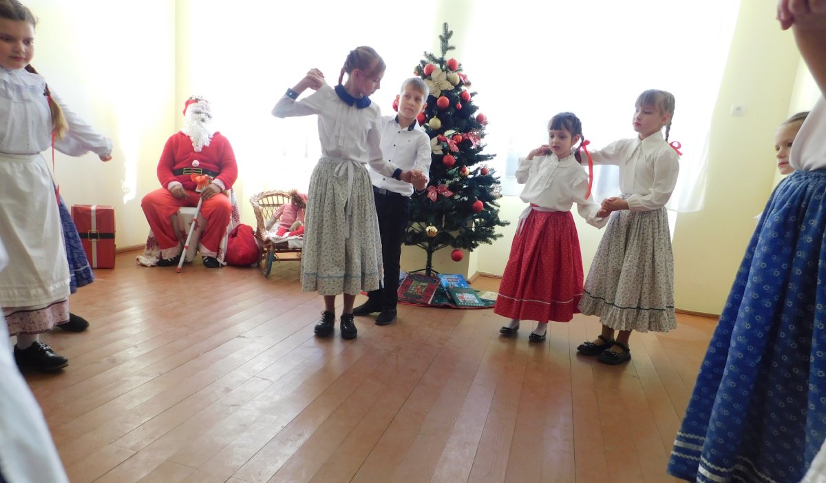Miután a Mikulás megpihent, kezdetét vette az adventi program. A Beregsomi Margaréta Néptánccsoport tagjai meggyújtották az adventi koszorú első gyertyáját, majd előadták ünnepi műsorukat. A táncoslábú fiatalok előbb polgári táncokat adtak elő, majd elropták a KárpátHáz Civil Szervezet Összetartozás táncát is. Ezután Nagy Karolina Kun Magdolna Adventi ima című versét adta elő.