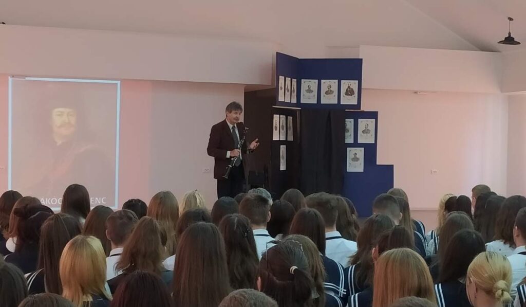 A Liszt Ferenc-díjas tárogatóművész a II. Rákóczi Ferenc Kárpátaljai Magyar Főiskola Szakgimnáziumába is ellátogatott.