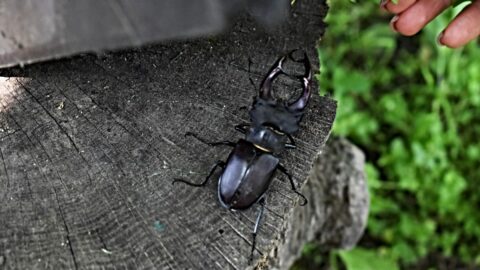 a szomszéd kislány szarvasbogarakat gyűjt.