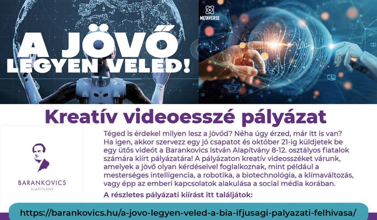 Második alkalommal hirdet videóesszé pályázatot magyarországi és határon túli  8-12. osztályos általános- és középiskolás diákcsapatok számára „A jövő legyen veled!” 2.0 címmel.