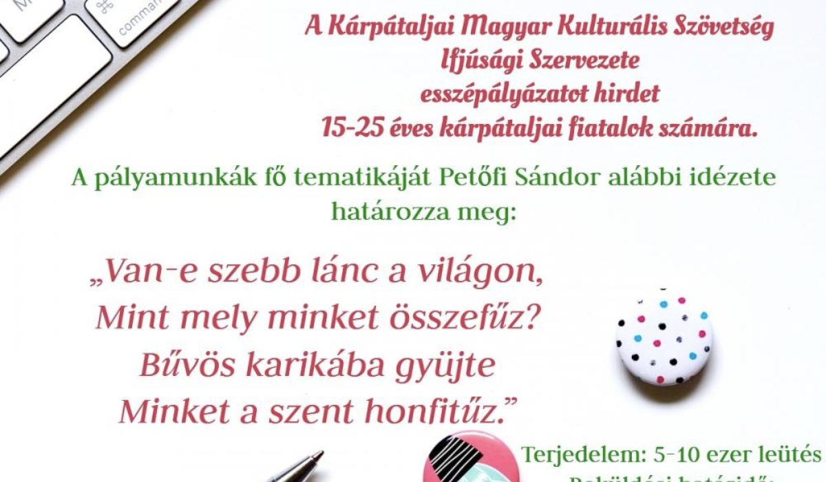 A Kárpátaljai Magyar Kulturális Szövetség Ifjúsági Szervezete esszépályázatot hirdet a nemzeti összetartozás napja alkalmából.