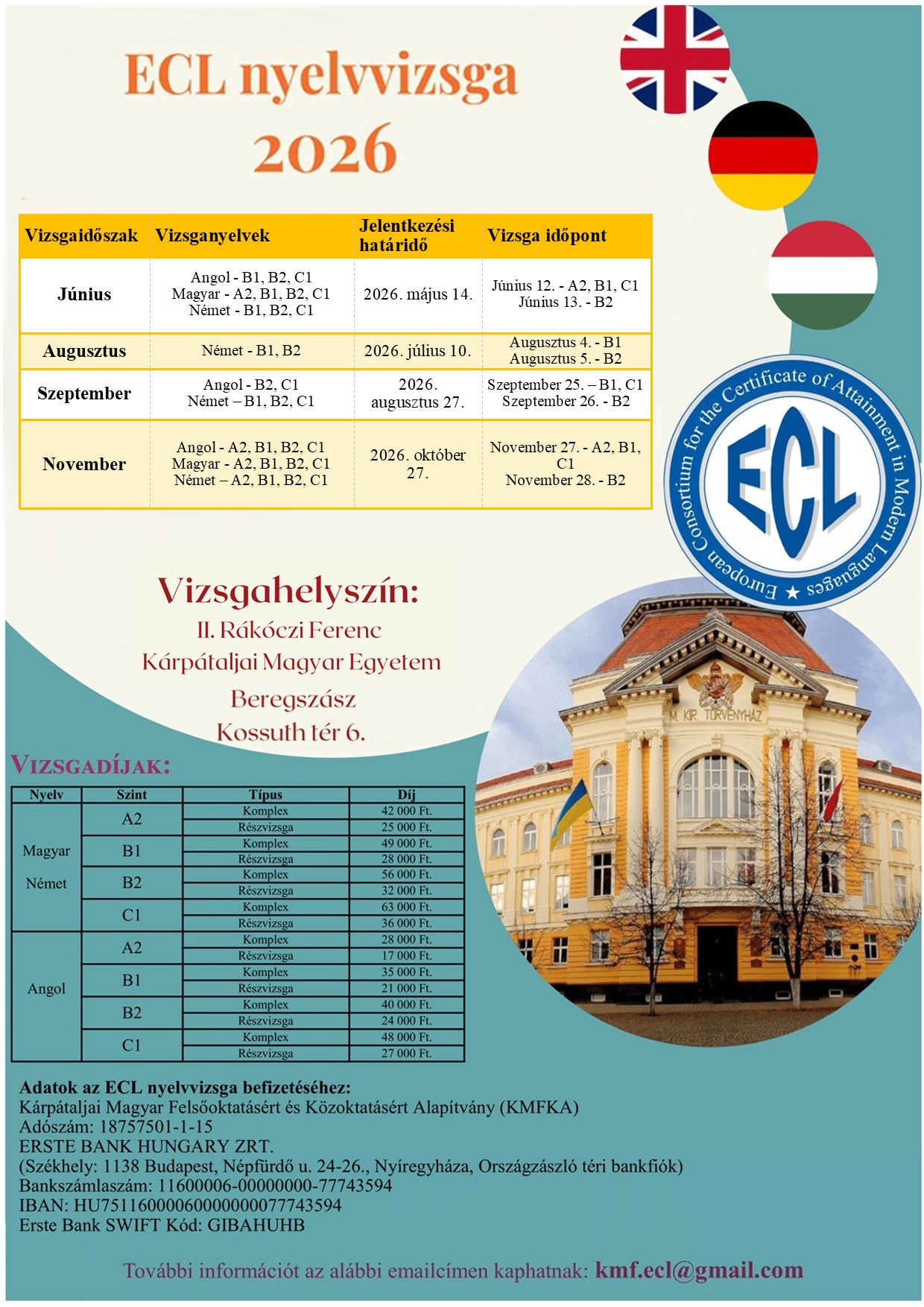 Adatok az ECL nyelvvizsga befizetéséhez:
