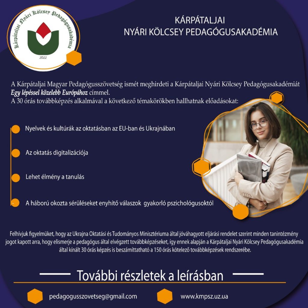 A Kárpátaljai Magyar Pedagógusszövetség ismét meghirdeti a Kárpátaljai Nyári Kölcsey Pedagógusakadémiát Egy lépéssel közelebb Európához címmel.