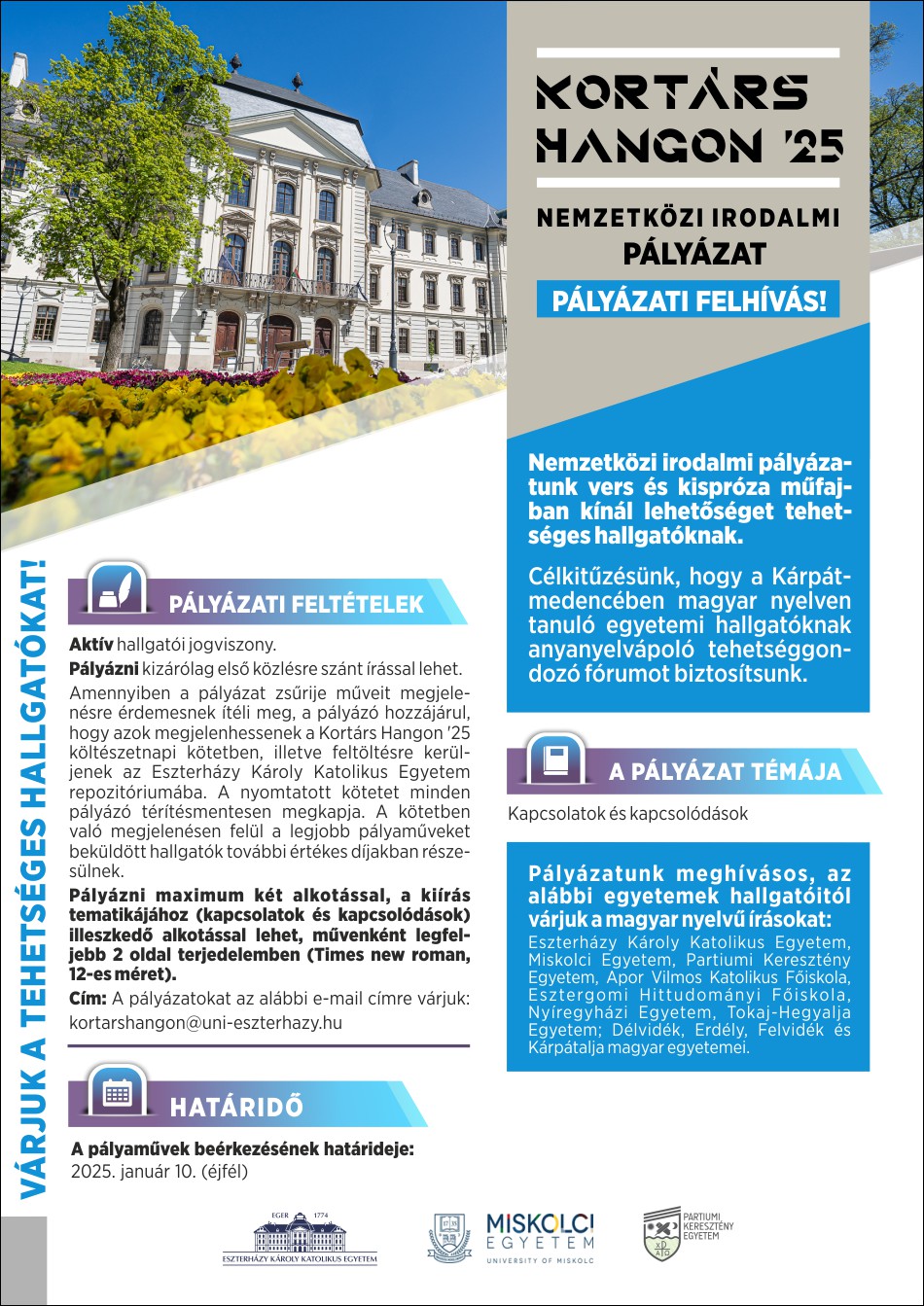 - A pályamunkákat a kortarshangon@uni-eszterhazy.hu email címre várják.