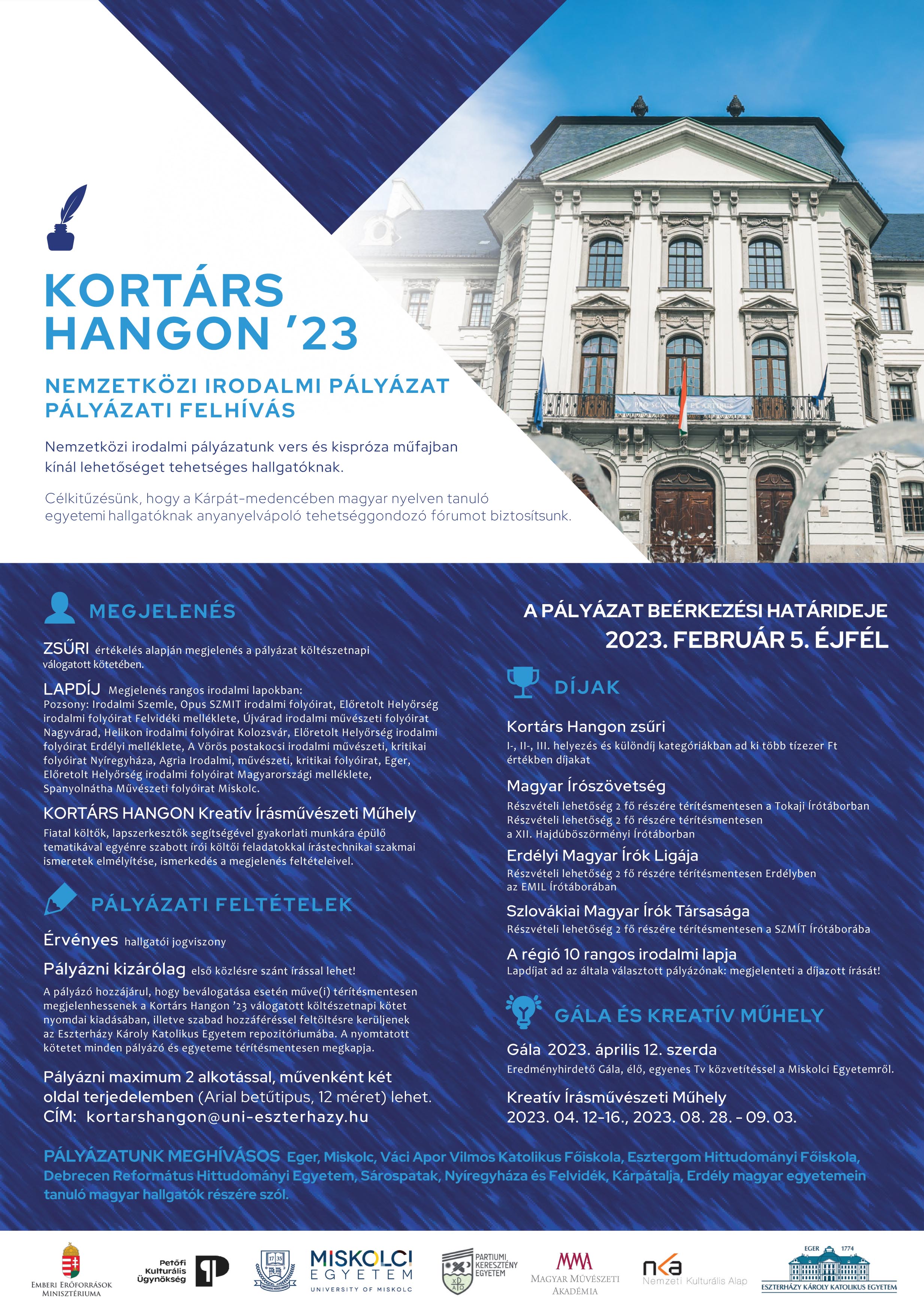 Az Eszterházy Károly Katolikus Egyetem a Miskolci Egyetemmel közösen immár 19 éve szervezi a Kortárs Hangon Nemzetközi Irodalmi Pályázatot, ahol a határainkon túli egyetemek magyar hallgatói is többször sikeresen szerepeltek.