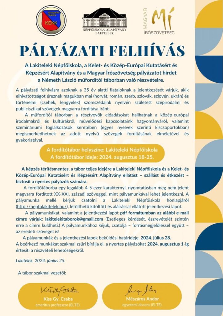 Idén kilencedik alkalommal rendezik meg a Németh László műfordítói tábort a Lakitelki Népfőiskolán.