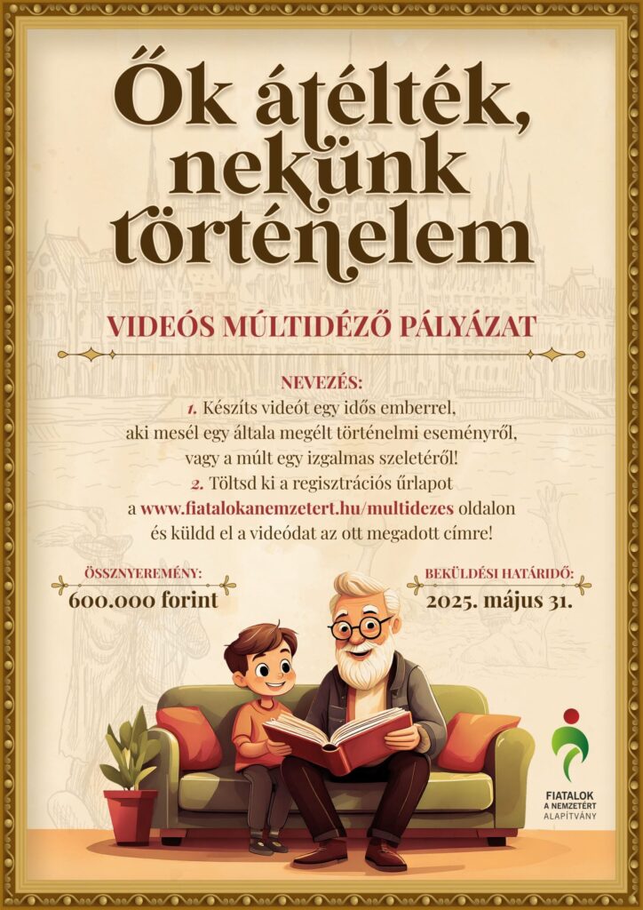 A Fiatalok a Nemzetért Alapítvány új pályázatot hirdet, amelynek célja, hogy minél több fiatalt ösztönözzünk arra, hogy videókat készítsenek idős emberekkel, és megosszák a nyilvánossággal az ő tanulságos történeteiket és életbölcsességeiket.