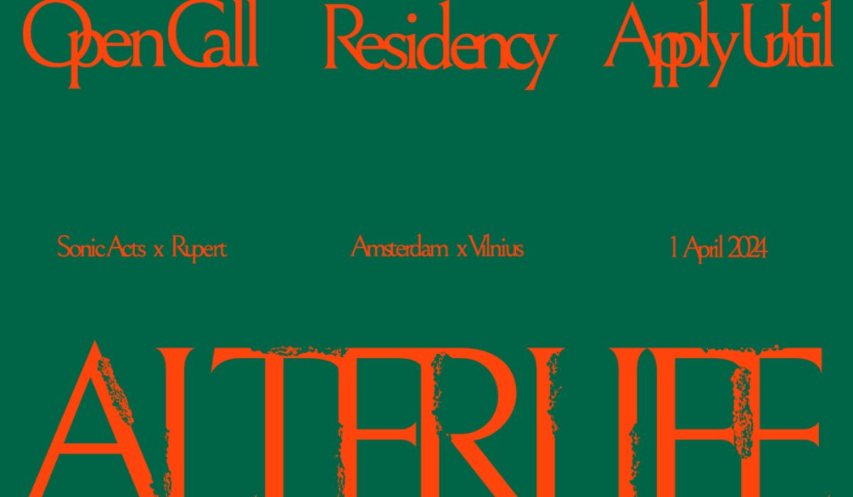 A Sonic Acts és a Rupert közös rezidenciaprogramot szervez művészeknek ALTERLIFE címmel a 2024 szeptembere és 2025 decembere közötti időszakban.